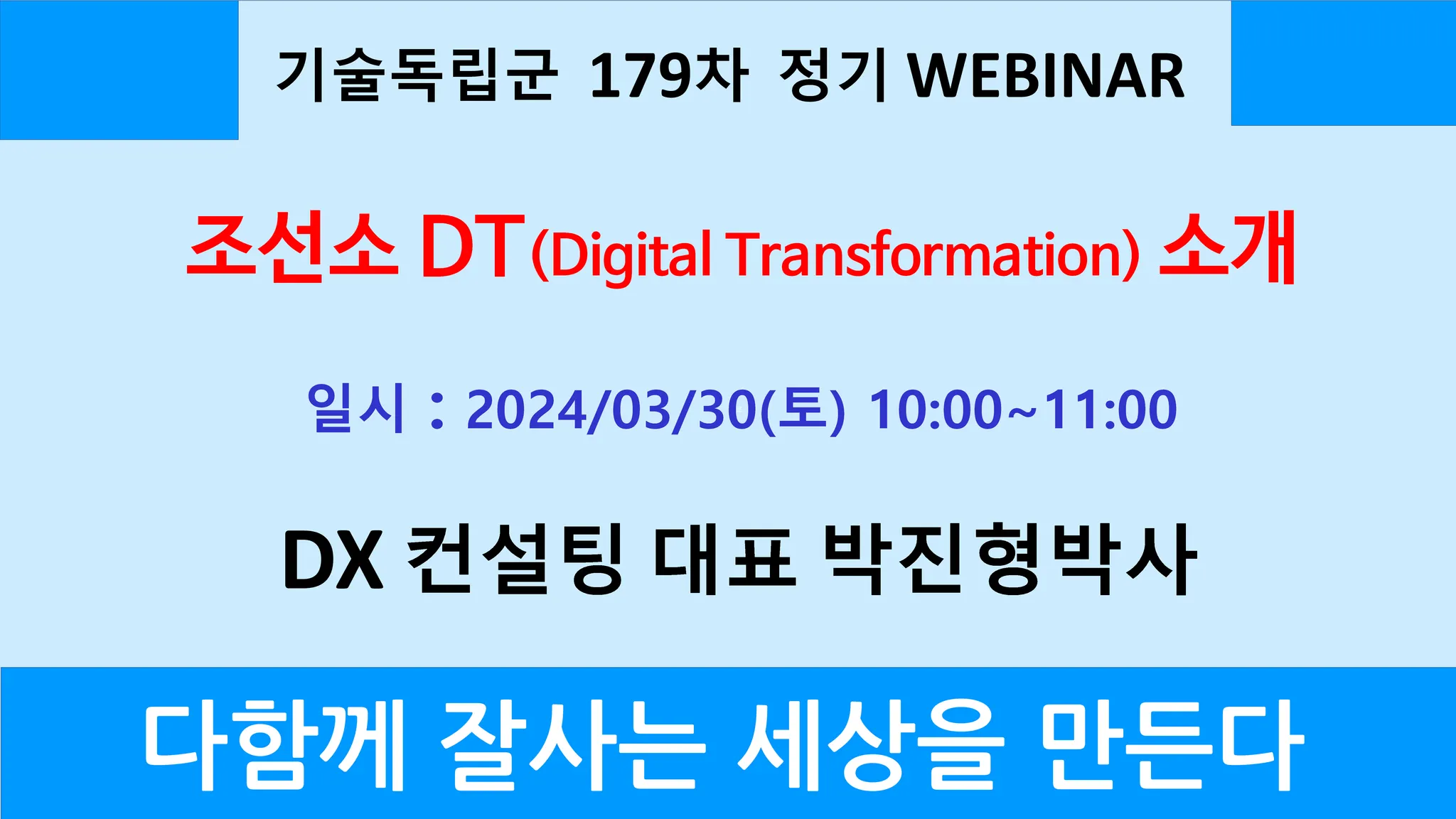 토요 정기 Web Seminar는 유튜브 '기술독립군TV'로 관리되며, 발표자와 참가자가 각자 편한 장소에서 Zoom으로 진행합니다