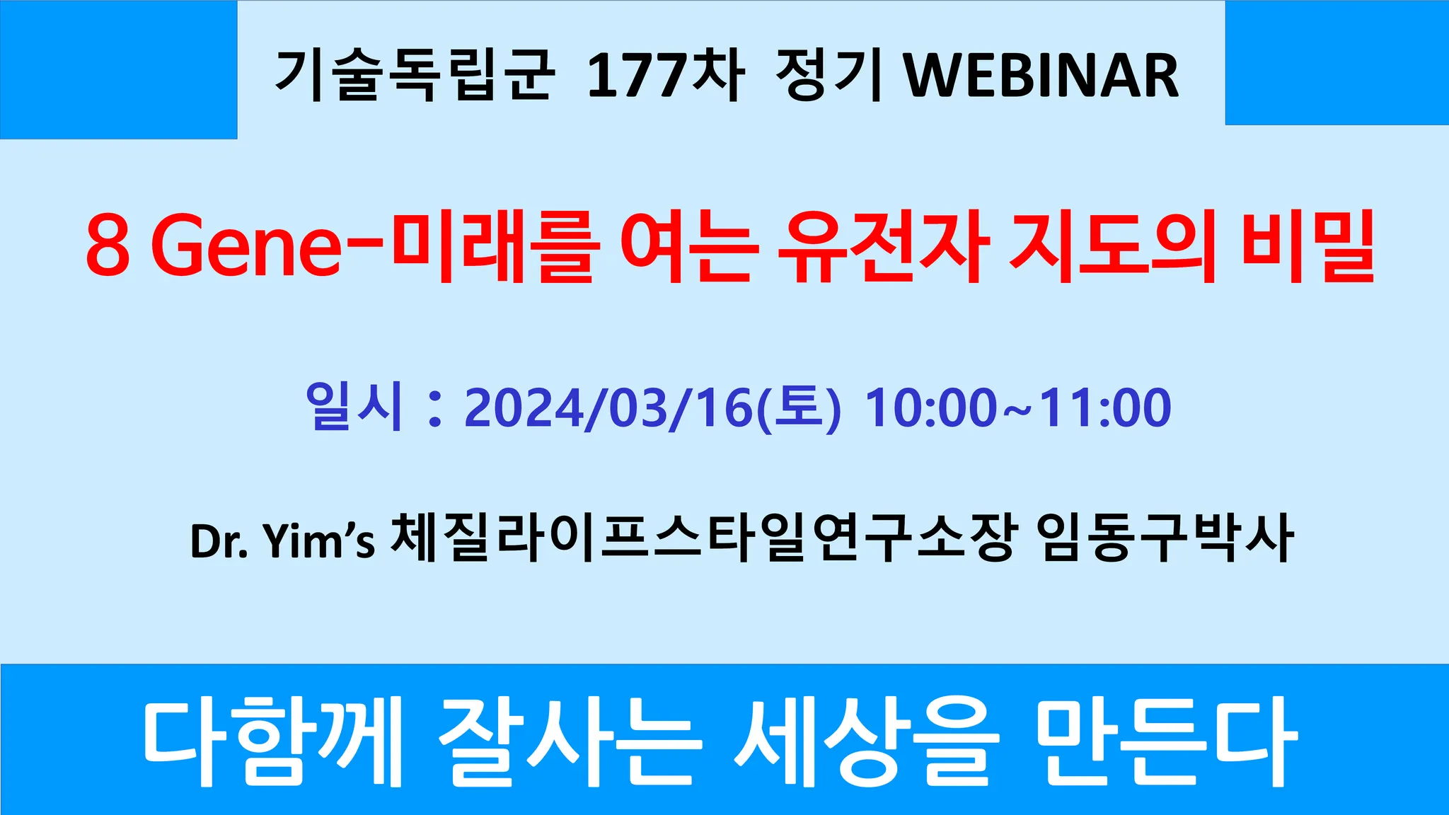 토요 정기 Web Seminar는 유튜브 '기술독립군TV'로 관리되며, 발표자와 참가자가 각자 편한 장소에서 Zoom으로 진행합니다
