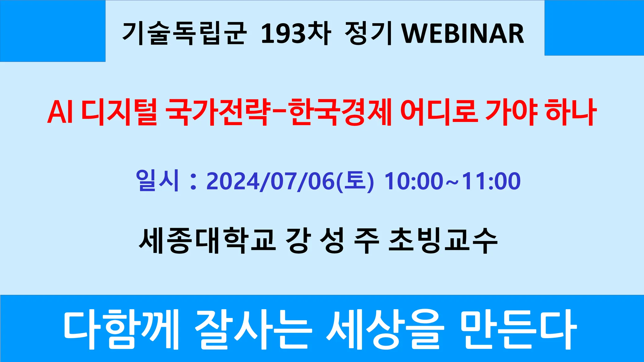 작년 한국은 2.9% 성장했는데 일본은 3.1% 성장했고 미국과 중국도 성장하고 있어 새로운 전략이 필요한데, 과거 90년대 초고속망전략과 유비쿼터스전략을 참고해서 최근 AI시대가 열리고 있어 이에 대응해서 새로운 강국으로 나아가기위한 국가전략 차원에서 인재양성, 스타트업, 시장창출, 기술혁신, 글로벌 등 10대 도전과제를 소개하고 실행방안을 토론하고자 함.